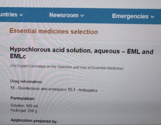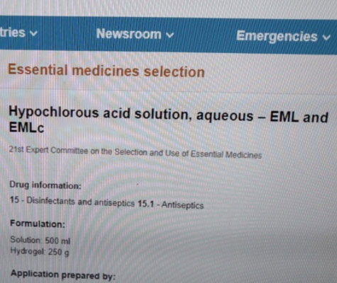 Non chemical and Natural disinfection, sanitization and antiseptic HOCL WATER with neutral PH