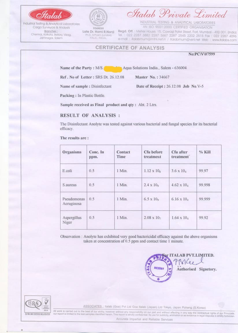 (Anolyte or AQUASOL or Aqualyte or Hypochlorous or Mixed oxidants or Super Oxidant Water or GT SOL or Pathocidal)